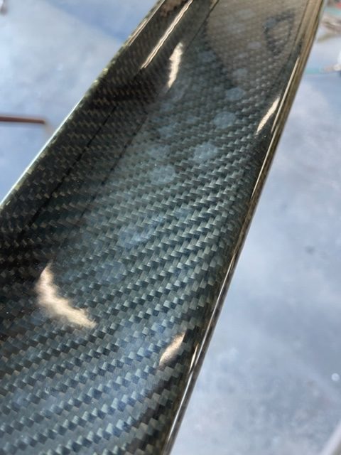 本日のご依頼は雨染みで白い斑点のようになってしまったカーボンのウイングの修理のご依頼です。